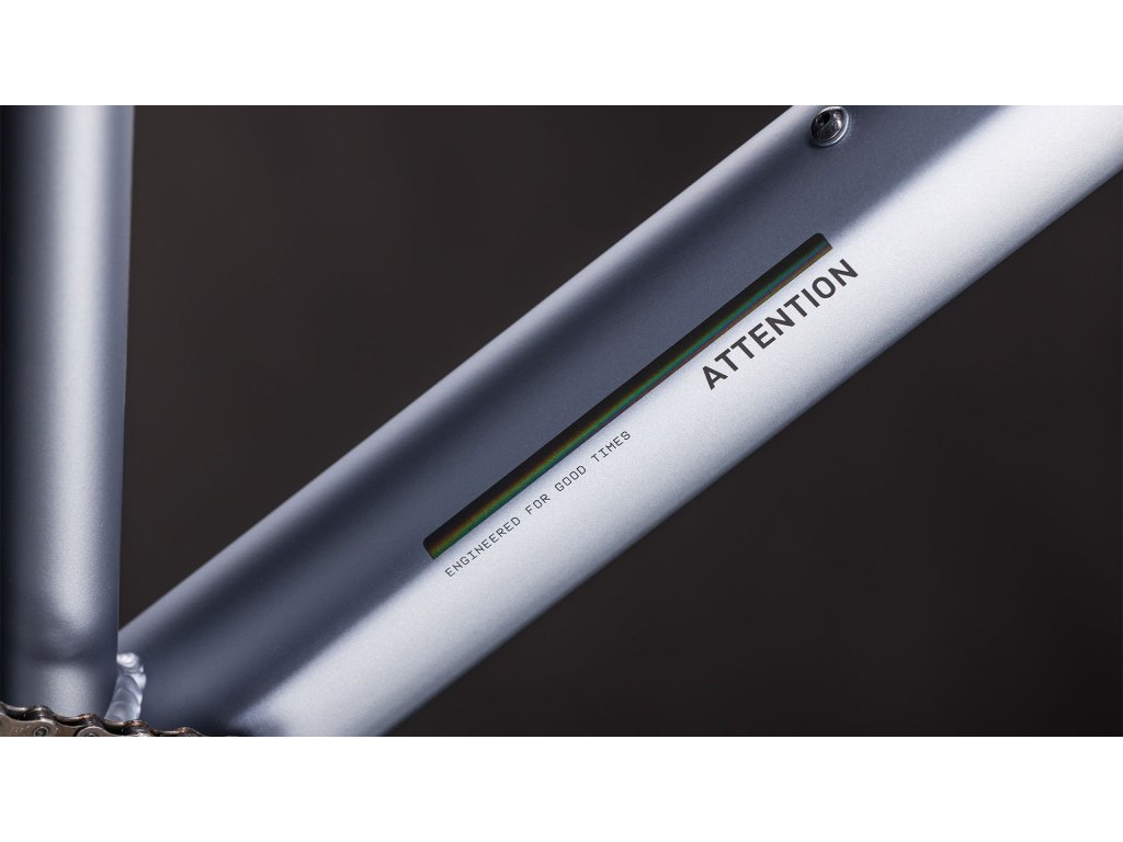 Krása je víc než pouhá slupka: elegantní vzhled kola Attention je zásluhou hladce svařovaných spojů hlavové a sedlové trubky. Obsahuje spodní držák se závitem a vnitřní vedení kabelů, dále plochý držák kotouče, který se bez problémů integruje s naším držákem stojanu, a integrované montážní body pro blatníky a nosič ACID. Pečlivě promyšlená geometrie zahrnuje nižší horní rámovou trubku pro jistější ovládání a dostatek prostoru pro široké, přilnavé a pohodlné pláště o průměru 2,25 palce. Systém Size Split má také rozšířenou nabídku, takže ať už jste jakkoli vysocí, bude pro vás k dispozici model Attention, který vám dokonale padne.