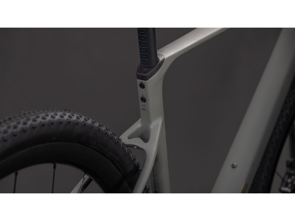 Rám Nuroad C:62 využívá vše, co o karbonových rámech Cube ví a přetváří to do podoby, která je ideální pro gravel. Rám má dostatek prostoru pro pláště až do šířky 50 mm (45 mm s blatníky). Integrovaná objímka sedla a částečně integrované vedení kabelů doplňují elegantní, organický vzhled rámu. Karbonová vidlice C:62® má dvě montážní pozice pro nosič, zatímco rám samotný je připraven pro montáž blatníků a zadního nosiče, pokud je budete chtít použít. A celková hmotnost toho všeho? Pouhých 1 150 g pro rám střední velikosti. Je tedy odolný, ale také extrémně lehký. Ideální základ pro nový přístup k objevování štěrkových cest.